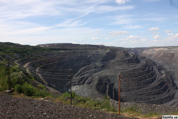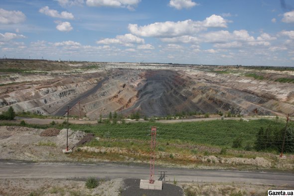 Сам кар'єр — нагадує глибоку впадину із дорогою-серпантином. По ній курсують самоскиди. У рік вивозять бдизько 12 млн т руди. Цього достатньо, аби сформувати понад 6 млн т котунів.