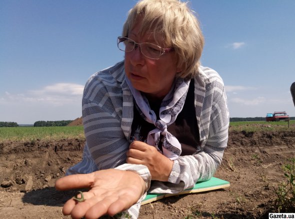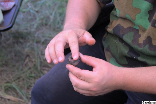 – В основному, наші нинішні знахідки тут – кераміка скіфського часу і бронзового віку. Яка, ще не знаємо – чи бондарихінська культура (археологічна культура бронзової доби XI – VII ст. до н. е. Отримала назву за поселенням Бондариха на Харківщині. – Gazeta.ua) , чи зрубна ( археологічна культура бронзової доби ХVI – ХII ст. до н.е.– Gazeta.ua), – розповідає Олег Миколайович. – З особливих знахідок – залізний ножичок скіфського часу. Сьогодні знайшли і скіфську шпильку для одягу. Є фрагмент ножа бронзового віку, прясло – фрагмент скіфського ткацького станка, – археолог показує вже упаковані в пакетики і підписані знахідки.