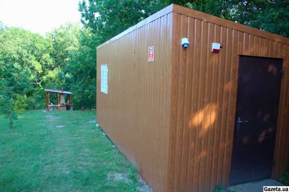 Під лісом притулилися станція сонячних батарей і два невеликі житлові вагончики. Це базовий табір, де живуть археологи, які приїжджають на розкопки. Видно, що тут є люди – двері одного з вагончиків відчинені, на столі під навісом стоять із десяток кружок та чашок, банки з цукром та кавою. На мотузці між деревами сушиться після прання одяг.