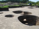 З одного краю кар'єру зняли верхній шар ґрунту до піску, від чого утворилося просторе рівне плато. У ньому залишилися округлі ями неправильної форми – це місця розкопів. Саме тут археологи зробили свої нинішні знахідки.
