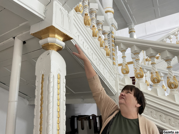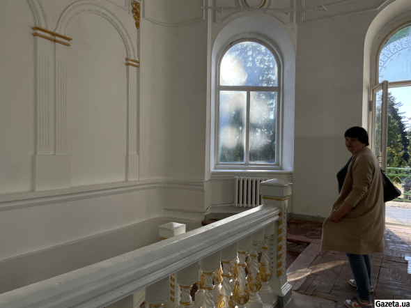 - Цими сходами дами заходили, щоб спідниці не підіймать, - каже Тетяна Продан із захопленням. - Можете піднятися. Тут по 100 людей ходять - і воно витримує.