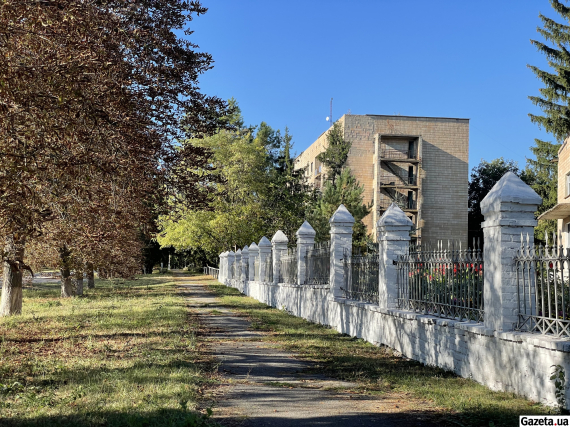 За воротами коледжу бачимо відносно нову будівлю - головний корпус навчального закладу. Перед входом стоять лавки, прикриті гілками багаторічних ялин. Щойно повернувшись з обіду, нас зустрічає заступниця директора коледжу - викладачка громадянської освіти Тетяна Продан, енергійна 65-річна жінка з коротким волоссям.