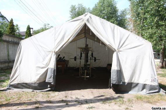 Одразу за ворітьми, навпроти невеликої парковки, чути гарчання дрелі, стукіт молотків. Будують спортзал, розповідає командирка "Госпітальєрів", нардепка Яна Зінкевич. Проводить екскурсію тиловою базою батальйону. Говорить стримано й майже не посміхається.