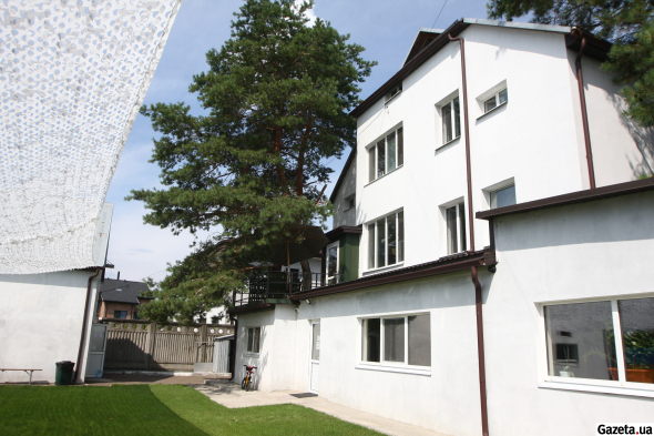 Територія засіяна газоном. Навколо квітнуть трояндові кущі, а яблука на деревах уже почали червоніти. Між будинками над широкою галявиною розкинули білу сітку, що кидає на траву мереживну тінь і захищає її від палючого сонця. Поруч біля паркану стоїть навчальний центр - невелике приміщення, заставлене столами й стільчиками.