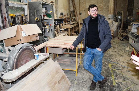 "Як соціальне підприємство працюємо 4 роки. Робимо меблі на замовлення, переважно офісні. Ще дитячий посуд, іграшки та інше. Почалось все з проєкту у бізнес-школі. Спершу планував майстерню-коворкінг. Але за розрахунками зрозумів, що навіть не покрию оренду. Тоді спробував майстерню по меблях. Львівська освітня фундація виділила грант на цю ідею. За ці гроші купили перше обладнання, решту — пізніше з прибутку".