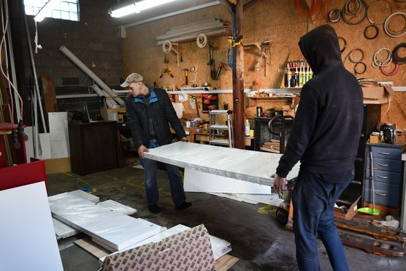 "Шліфування — це моя частина роботи тут, - каже. - Але я можу допомогти у всіх етапах — від порізки і аж до складання. Працюю в майстерні 2 роки. Досить довго залежав від алкоголю. Тримав удома господарство, пішов у запой. Затягнуло серйозно. З роботи звільнився, тоді з іншої. Не міг стриматись, щоб не випити. Усвідомив, що хочу лікуватись і поїхав у центр. Був там пів року, тоді пішов сюди на роботу. Це заняття емоційна допомога, стараюсь нікого не підвести. Сама наявність роботи — це вже мотивація. Тут підтримують та допомагають".
