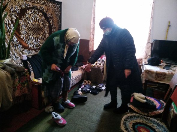 – Доброго дня! Я вам дещо привіз. Щас будем одкривать посилки, приходьте мірять, – відчиняє двері чоловік середніх років у світло-коричневій куртці і з блакитною медичною маскою на обличчі. Це – депутат обласної ради двох скликань, місцевий фермер Володимир Ярошенко. Опікується притулком. Привіз посилки, які стареньким надсилають небайдужі люди з різних міст.