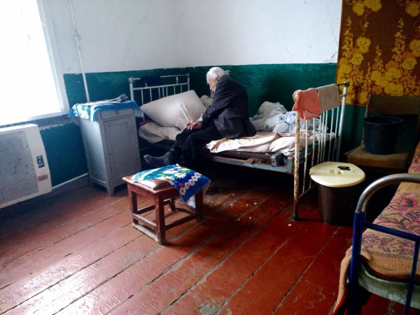– Я тут дольше всех живу, 9 лет. Родился и жил когда-то в российской Казани. Там папка похоронен. Там остались и мои две жены. Дети есть. Внук был, но разбился на машине. Поехал с бабушкой, попали в аварию. Она выжила, а его не стало, – каже Борис Гафулов. – С тех пор, как мамка померла, приехал в Украину. Не помню уже в каком году. Сначала был в Глобинском районе в селе Чапаево. Работал скотником в колхозе. Потом вышел на пенсию. Когда умер сельский голова, уехал оттудава. В разных местах жил, а потом привезли сюда. Тут раньше была больница, а стал бабдом. Когда я приехал, двое людей жили. Но, они уже поумирали. Нема больше никого из тех. Один остался. Прописан в бабдоме, – показує український паспорт.