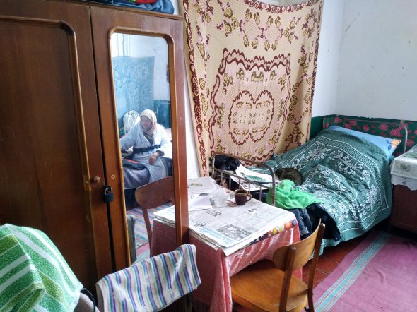 – Ранком прокидаюся коли як – не рано й не пізно. Якби в своїй хаті, то раньше би вставала, бо треба поратися. А сьогодні встала, постірала трошки свого. Тут є машинка, но я своє більйо нікому не даю. Руками прала. Сходила повісила на вулиці – сховала, щоб його ніхто не бачив. Як підсохне, зніму і перевішу на бильця ліжка. Ото і вся робота. Ще можу почитать газети, без окулярів бачу. Виписую три, поштарка носить. Ходю, бува, на село – до однієї жінки, щоб мені спідницю підшила, бо розтяглася резинка. А ще купила кохту теплу. В одної жінки, яка приїжджає у село речами торгувати. Каже: "Бери. У тебе нікого немає. Для себе живеш". Я взяла і оддала 600 гривень.