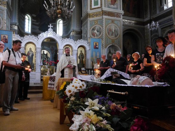 О 10:00 домовину з тілом Якутовича заносять до храму Вознесіння на кладовищі. Люди підносять червоні троянди. Режисер Михайло Іллєнко кладе біля труни жовті соняхи.