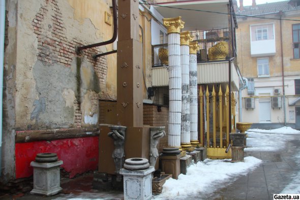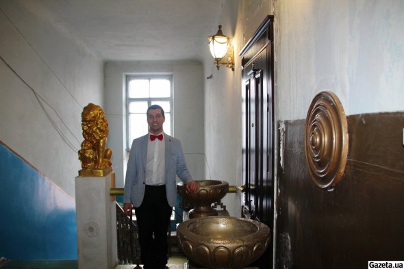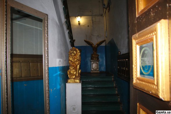 — Поначалу тут дуже всього нагромоздили. Балкон оцей був забитий різними речами, до нього доступу ніякого не було. Там стояв мангал кований — непонятно зачєм, йому (Грегорі. — Gazeta.ua) б не дали там смажити нічого. Там же стояли оті орли, що на першому поверсі зараз. Потом він уїхав, усе ми розчистили, а сусіди зробили там терасу, — каже 44-річний Андрій.