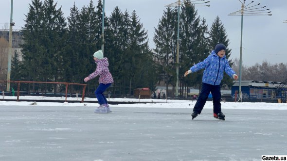 На льодову арену обережними кроками доріжкою ступають нові відвідувачі. Щоб не впасти, тримаються за руки. На стадіон приходять з друзями, рідними, маленькими дітьми. Ковзанка працюватиме до кінця лютого, а під час повітряної тривоги можна сховатися у великому укритті під ареною.