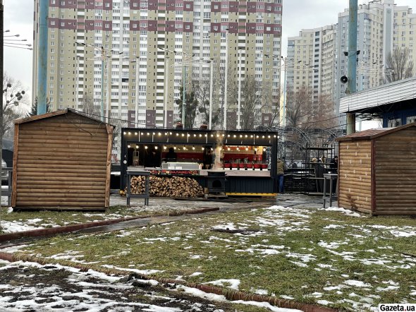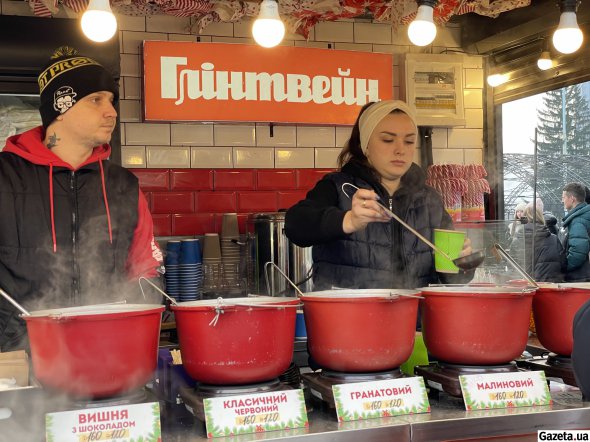 Гості Льодового стадіону починають збиратися в чергу до кіоску. Глінтвейн тут є на різний смак – з червоного та білого вина, імбирний, малиновий та гранатовий. Купити можна від 120 до 160 грн, залежно від порції. Це майже удвічі дорожче, ніж торік. Продають у кіоску шаурму з курятиною і телятиною від 145 грн, бургер – 165 грн.