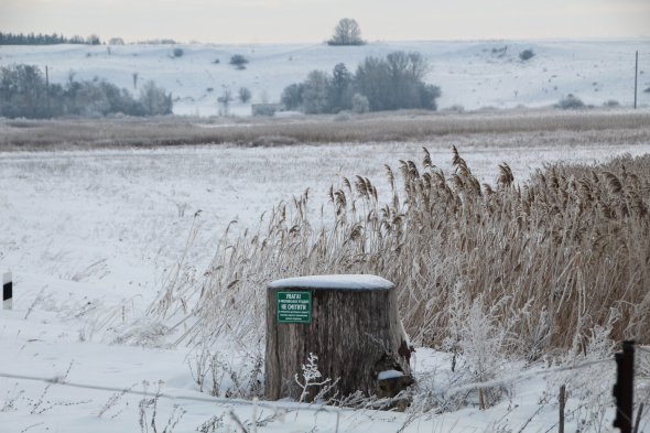 В очеретах викопаний ставок. До промоїни веде в снігу глибокий слід. Це бобер перевіряв ополонку.