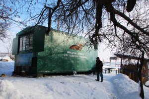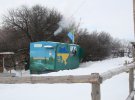 За вагоном - сінник. Кілька чоловіків пораються по господарству. Розчищають сніг, рубають дрова, підкидають в буржуйку. На всю бокову стіну металевого приміщення - синьо-жовта карта України.