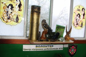 На вікні блищить велика снарядна гільза з дарчим написом від 26-ї бригади артрозвідки. Із 2014 року в цьому вагончику періодично зупинялися на нічліг українські бійці по дорозі на Донбас чи звідти.