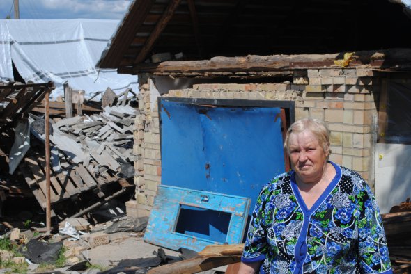 - І з-за граніци тут були і наші були, акти писали (приїжджали комісії, які фіксували руйнування для подальшої оцінки збитків. – Gazeta.ua). Але ще ніхто нічого не дає, бо йде війна і зараз трудно Україні. Треба терпіть, - веде далі Єва Михайлівна. - Нам саме главне, щоб накрить і окна поставить. Волонтери вже трохи помогли. Нам пайки дають і у сільсоветі тоже. Люди їдуть, бачуть, що тут побито і приносять нам допомогу.