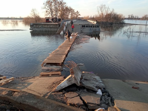 - Я пішов до росіян і пояснив, що люди не можуть вплав переправлятись у холодну пору року, - каже Сологуб. - Вони переписали прізвища волонтерів, моє. Пояснили, що я відповідаю за тих людей. Ми з волонтерами за допомогою пиломатеріалів зробили переправу. Під час евакуації обстрілів не було. З 10 по 21 березня евакуювали трохи більше 15 тисяч людей. Далі їм допомагали волонтери - автобусами відправляли в Лютіж (село неподалік. – Gazeta.ua), Київ на вокзали і вони їхали далі.
