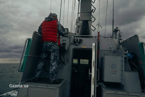 – А можеш ще раз повторити? – жартує старшина, коли катер, зриваючись з хвилі, кидає об воду. 50-тонний МБАК носить морем, ніби корок. В ілюмінатори ледь можна розгледіти, що "Костопіль" ще над водою. Але екіпаж абсолютно спокійний. Катер тримає швидкість у 16 вузлів.