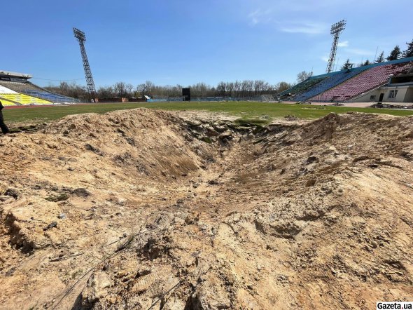 Посеред футбольного поля від ФАБ-500 утворилася величезна вирва. Унаслідок ракетних ударів загинуло щонайменше четверо людей