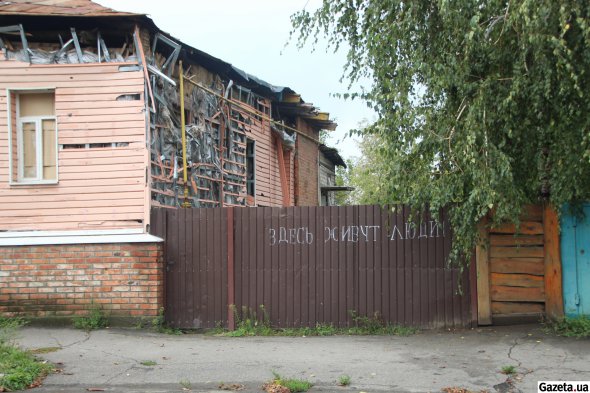 Автобуси завертають у приватний сектор. Їдемо повз одноповерхові будинки, на воротах яких подекуди написано: "Живут люди". Таким чином місцеві позначали свою власність від російських солдатів, бо покинуте житло в місті вони нещадно грабували, а то й оселялися в будинках без господарів.