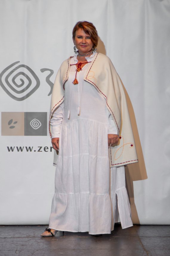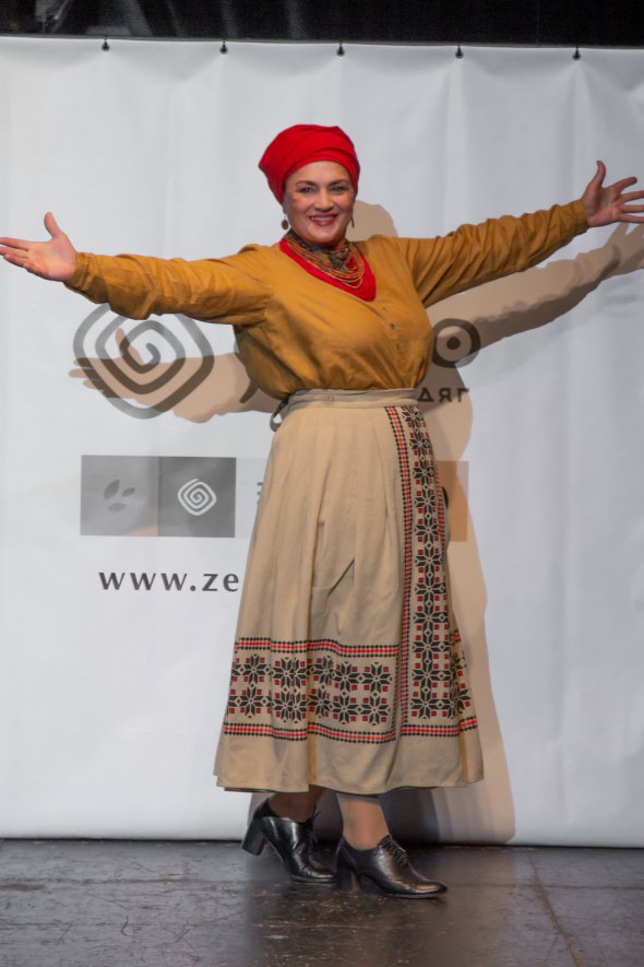 "Прийшла сюди за запрошенням Коляди. Товаришуємо з ним. В одязі цього бренду я не вперше. Коли дивлюся на ці ромби, то мене відкидає думками кудись в глибину, до язичництва, - розповідає артистка Navka у темно-синьому костюмі. - Одяг підбираю емоціями. Дещо відбираю в своїх дітей. Для себе завжди купую етнічний одяг. Торік рахувала вишиванки: було понад 20. Зараз ще більше. Кожна річ має свою згадку: в одній давала концерт, в іншій - знімалася в кліпі. Найцінніші ті, що робила моя бабуся. Я в них кліпи не знімала. Такі речі мають інше емоційне і смислове навантаження."