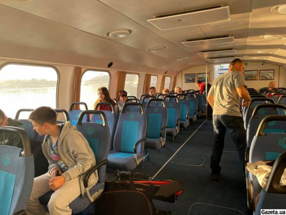 - Діти, заради Бога, сядьте!, - кричать дівчата-організатори хлопчикам Остапу та Тарасу. - Вам не можна виходити з каюти. Ми розженемося до 60 кілометрів за годину. На палубі буде небезпечно!