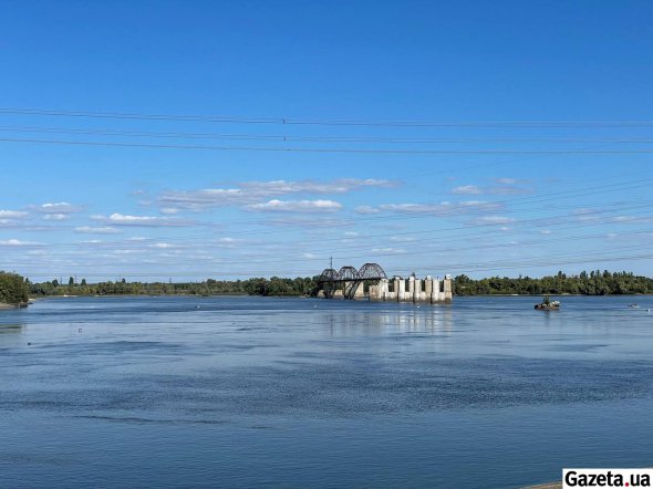Неподалік від ГЕС над водою стоїть зруйнований міст.