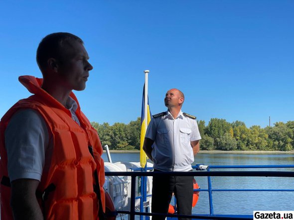 На моторному човні проводжати "Нібулон" припливли Каріна та директор дитячого табору Андрій. Радо махають туристам. За судном пропливають ще 100 метрів.
