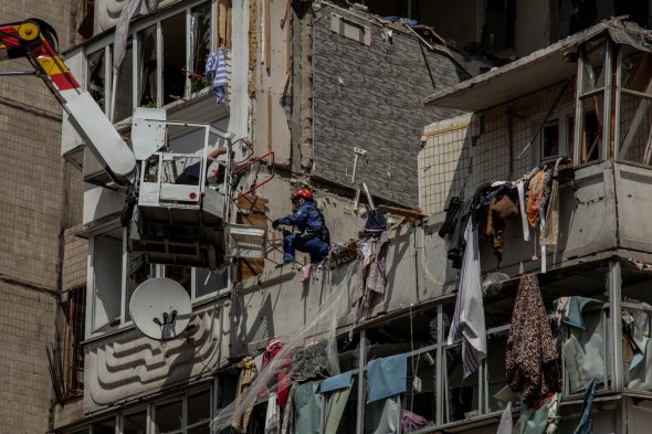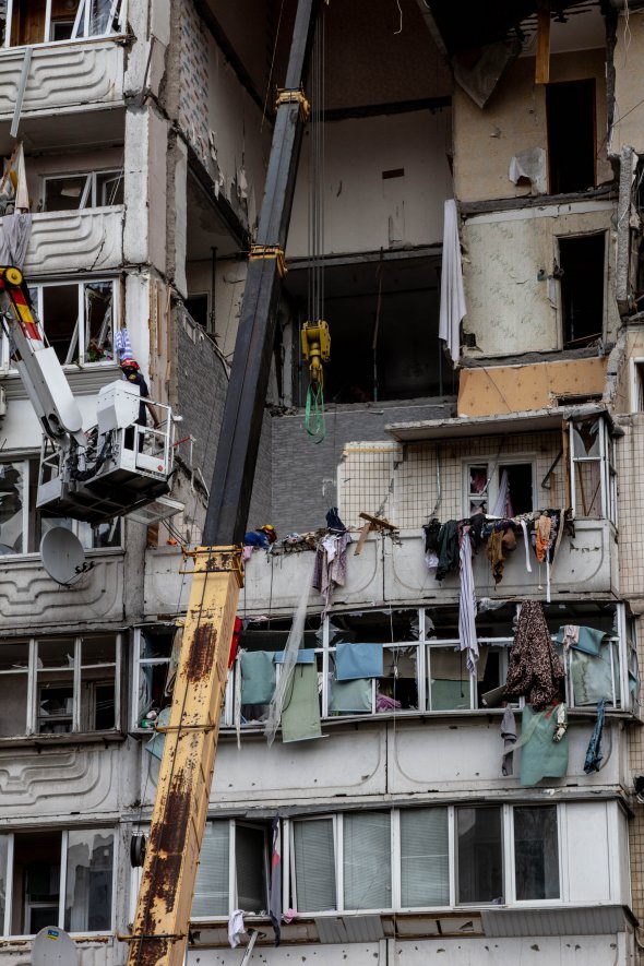 - Це жах, - каже Ткачук. - Все, що вище 5-го поверху, дуже небезпечно. Хлопці з підвалу до 7-го поверху поставили крепи, але будинок тріщить. Ви зараз почнете масово туди ходити і носити речі сходами. А на 8-му вони закінчилися.