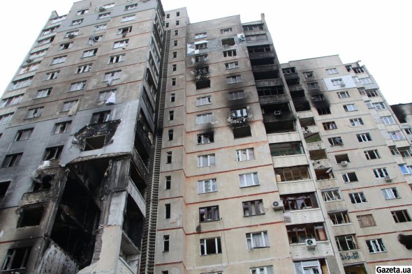 - Оцей будинок - найголовніший наш щит, - показує рукою на пробої від снарядів у багатоповерхівці 64-річна місцева Ольга Анатоліївна, говорить російською. - Він приймав на себе головний удар - усе, що летіло на нас із півночі. А те, що перелетіло через нього, потрапило до нас.