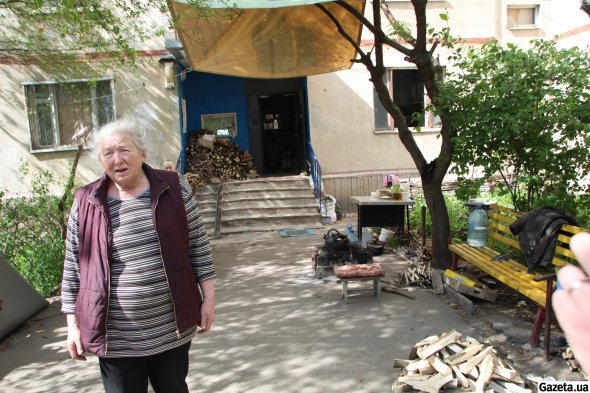 Зараз тут живуть 10 людей. Частково готують просту їжу. Зокрема, сьогодні варили картоплю в мундирах і доїдали вчорашню окрошку, додає Ольга Анатоліївна. У "гості" подекуди приходять мешканці інших будинків по окроп і гарячу їжу. Сюди ж волонтери привозять готові страви.