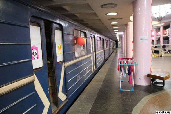 - Столик попросили в ресторані поряд. Якщо треба прати - гріємо чайниками воду, перемо в тазиках, розвішуємо наверху, а хто на пероні - на сушилках. Вода є в туалеті - треба піднятися на другий поверх в метро, - говорить жінка.