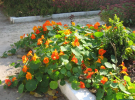 Настурція. Утворює густий зелений килим, придушуючи бур'яни. Її насіння добре проростає без втручання.