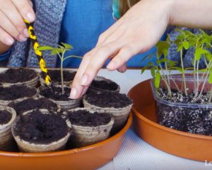 Помідори можна пікірувати відразу в основні ємності об'ємом від 500 мл до 1 л. А можна у два етапи — спочатку в невеликі стаканчики, а вже потім, через 2 тижні, перевалити в основні горщики.