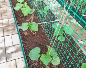 Коли огірки підростуть, підв'яжіть їх до опори. Це покращить вентиляцію, зменшить ризик захворювань і спростить збір урожаю.