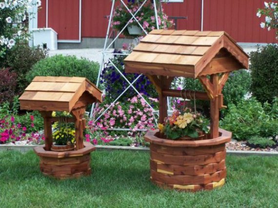 Старовинно виглядає дірява діжка, яку зручно використовувати як кашпо для ампельних рослин.