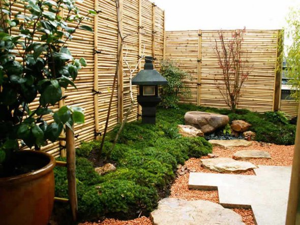 5. Бамбукові огорожі. Ними можна зонувати сад, прикрити недоліки ландшафту або ж використати виключно з декоративною метою. До висоти й частоти плетіння таких огорож вимог немає — обирати можна на власний розсуд.