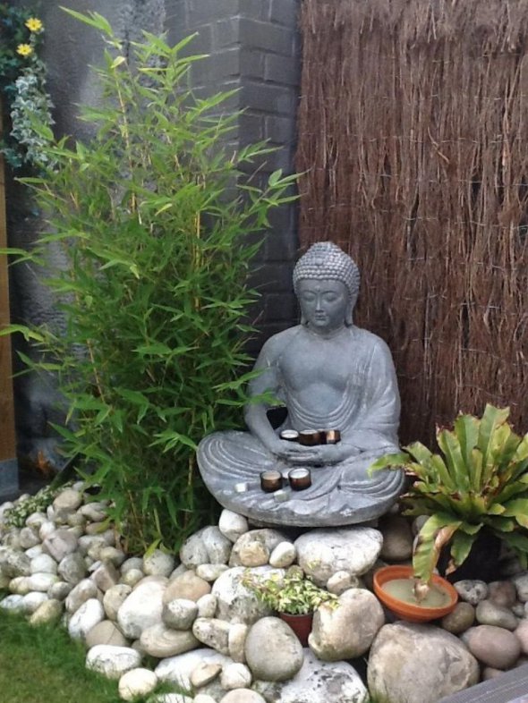 6. Кам'яні скульптури. Обирати їх слід з урахуванням значення зображеної істоти. Приміром, скульптура Будди символізує спокій та умиротворення, дракона — силу, лева — захист, черепахи — довголіття, журавля — прагнення пізнати істину.