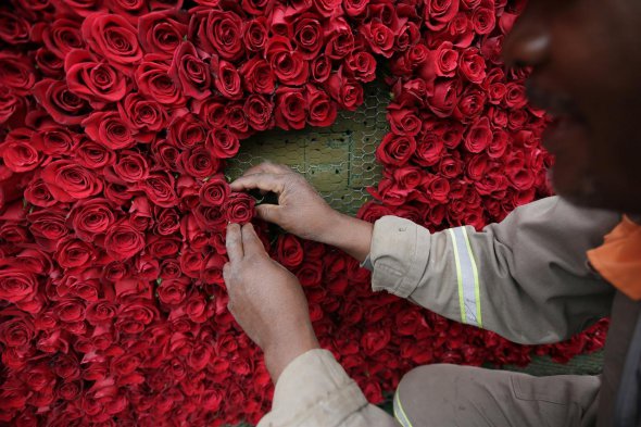 На створення квіткової "піраміди" в еквадорців пішло 546 364 троянди. З них більшість червоного кольору й лише 6 % білих, жовтих і рожевих. Роботи тривали по 16 годин щодня протягом цілого тижня. Пише відоме американське видання The New York Times.