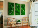 Мох можна комбінувати з іншими елементами, наприклад з деревом, а також пофарбувати у різноманітні кольори. Хоча і просто зелений мох на картині або панно будь-якої форми виглядатиме ефектно.