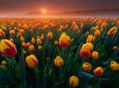Голландський фотограф-ландшафт зробив незвичайну серію фотографій, яка доводить величність цих квітів. Вони здаються такими нескінченними, ніби тягнуться до горизонту. Тюльпани бувають різних кольорів, розмірів та форм. Фотограф назвав особливо вдалою колірною комбінацією темне небо та червоні тюльпани.