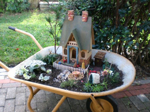 Облаштувати казковий міні-сад можна як на відкритій ділянці, так і в будь-якій ємності: горщику, відрі, пластмасовому контейнері, кошику, ящику чи навіть у тачці. Свою підбірку ідей для створення таких куточків презентував інтернет-ресурс Live Diy Ideas.