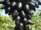 2. Виноград Чорний дзьобик має ягоду, як дзьоб у пташки. Хрустить при прокушуванні. Але хоч яка налита, шкірка не тріскається. Чорний дзьобик — гібридна форма винограду селекції Капелюшного. Дозріває за 80 днів. Грона важать 800–1200 г. Тиждень тримаються на гілці без осипання.