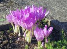 3. Восени квітки з'являються на голому стеблі на висоті 20 см. Уже після випускає листки-пера. Цвіте з кінця вересня до першого снігу. Пелюстки бувають білі, рожеві, пурпурні та смугасті. Квіти зібрані в букети.