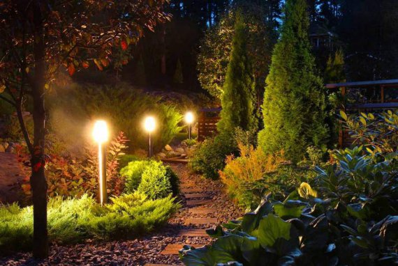 Є 2 види ландшафтного освітлення — функціональне та декоративне.
