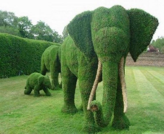 Інакше рослинні скульптури називають "топіарі". Для створення їх використовують вічнозелені рослини, деревні чагарники, низькорослі дерева зі щільною кроною і траву, пише Topdreamer.
