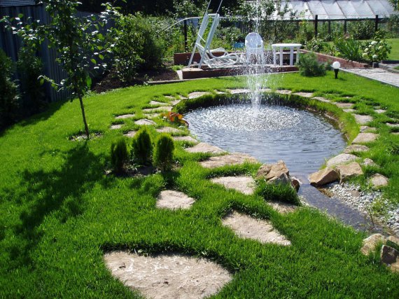 Фонтан - один з найефектніших елементів оформлення ландшафту, який зволожує повітря. В спекотні дні біля таких "оазисів" буде комфортно та прохолодно.