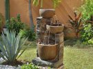 Стаціонарні фонтани можуть бути встановлені у будь-якому місці ділянки. Вони мають розпилювач, через який подається струмінь води і падає в чашу фонтану.