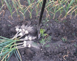 Поливайте регулярно, особливо в спеку липня. Додайте компост або біогумус після збору часнику, для поживного старту наступним культурам.